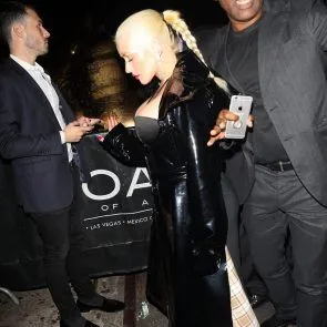 Деколте Цхристина Агуилера је превелик! Знамо да КСТина има велике сисе, али у последње време их ставља у средиште свог појављивања! Овог пута је виђена како долази на афтер парти Оак Харпер-а у Њујорку, обучена у црно и даје свој врући дубоки деколте на сребрном тањиру! Уживајмо и будимо тешки за Цхристину Агуилеру, волео бих да јој разбијем МИЛФ дупе!